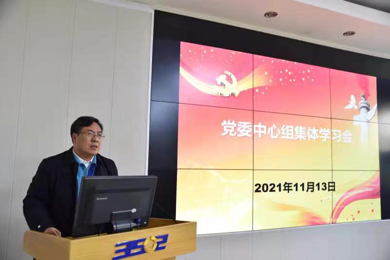 11月13日下午,华体会体育app下载官方首页3502公司召開黨委中心組學習擴大會,認真學習貫徹十九屆六中全會精神。公司黨委書記、執行董事周長勝領學,總經理助理級以上領導參加學習。